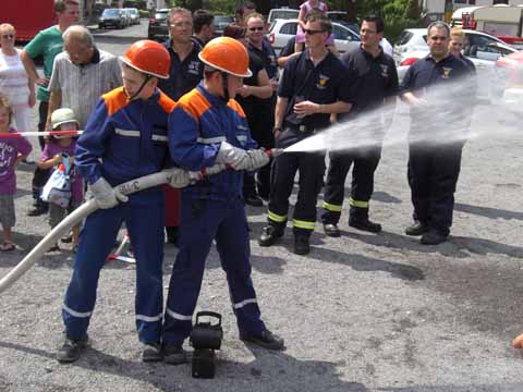 05.06.2011 - Die zahlreichen Besucher erhielten an diesem "Tag der offenen Tür" im Rahmen eines Sommerfestes - erstmalig die Möglichkeit, die neuen Räumlichkeiten des Löschzuges Feldkirchen zu besichtigen. Im Rahmenprogramm wurde für alle Altersklassen viel geboten. So präsentierten sogar die Junioren der Feldkirchener Mannschaft ihre Leistungsfähigkeit beim Löschen eines Brandherdes.